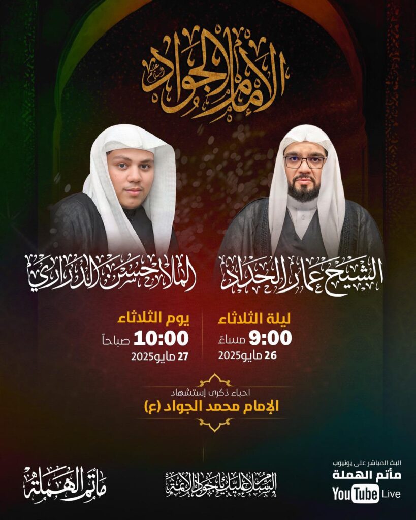 مأتم الهملة يُحيي ذكرى الإمام الجواد (ع) ببرنامج ديني متكامل يومي 26 و27 مايو 2025