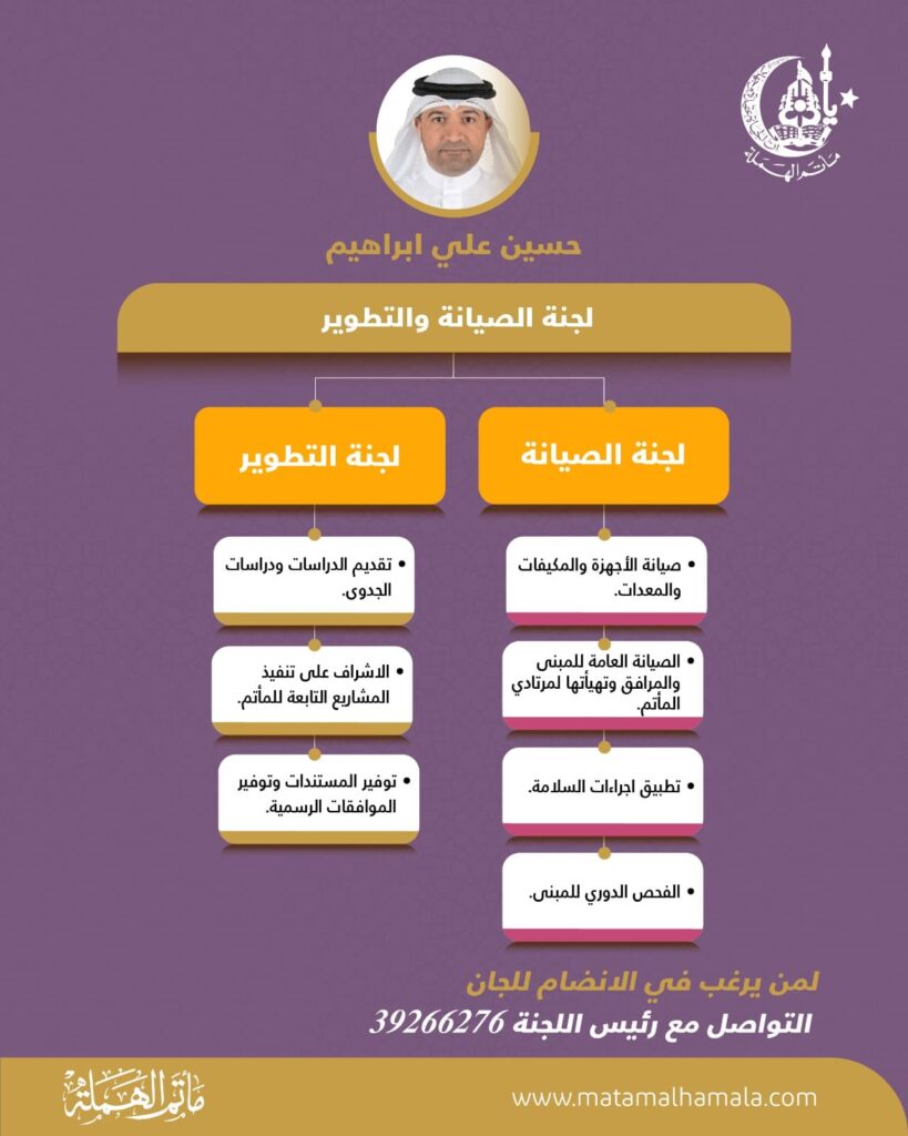 مأتم الهملة يعلن عن فتح باب التسجيل في لجان الخدمة للموسم القادم